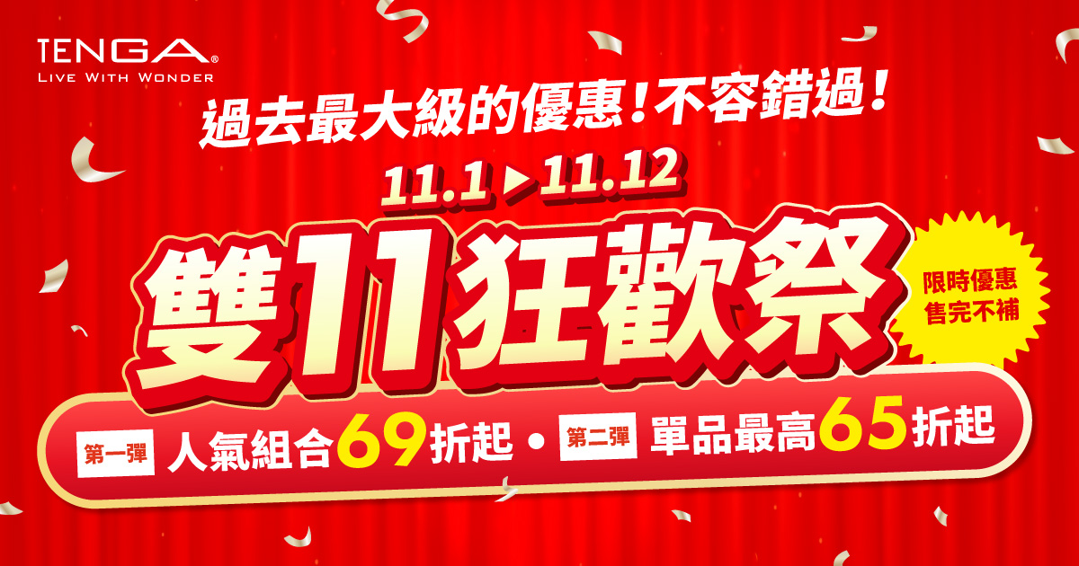 TENGA & iroha 觀察到台灣民眾在成人用品選購上,從一次性嘗試走向固定、自我照顧的消費型態。為回饋消費者,品牌官網於雙 11 期間推出雙重優惠活動:第一重為限定超值套組,集結三大熱銷系列共 10 種超值組合,優惠折扣 69 折起;第二重自 11 月 9 日起開放全館折扣,TENGA 單品 65 折起,iroha 系列 7 折起,全館同步享免運優惠。其他官方直營平台如MOMO、蝦皮、PCHOME 等平台.也有不同超值折扣優惠及組合,讓消費者以更安心、友善的方式入門或升級愉悅體驗。